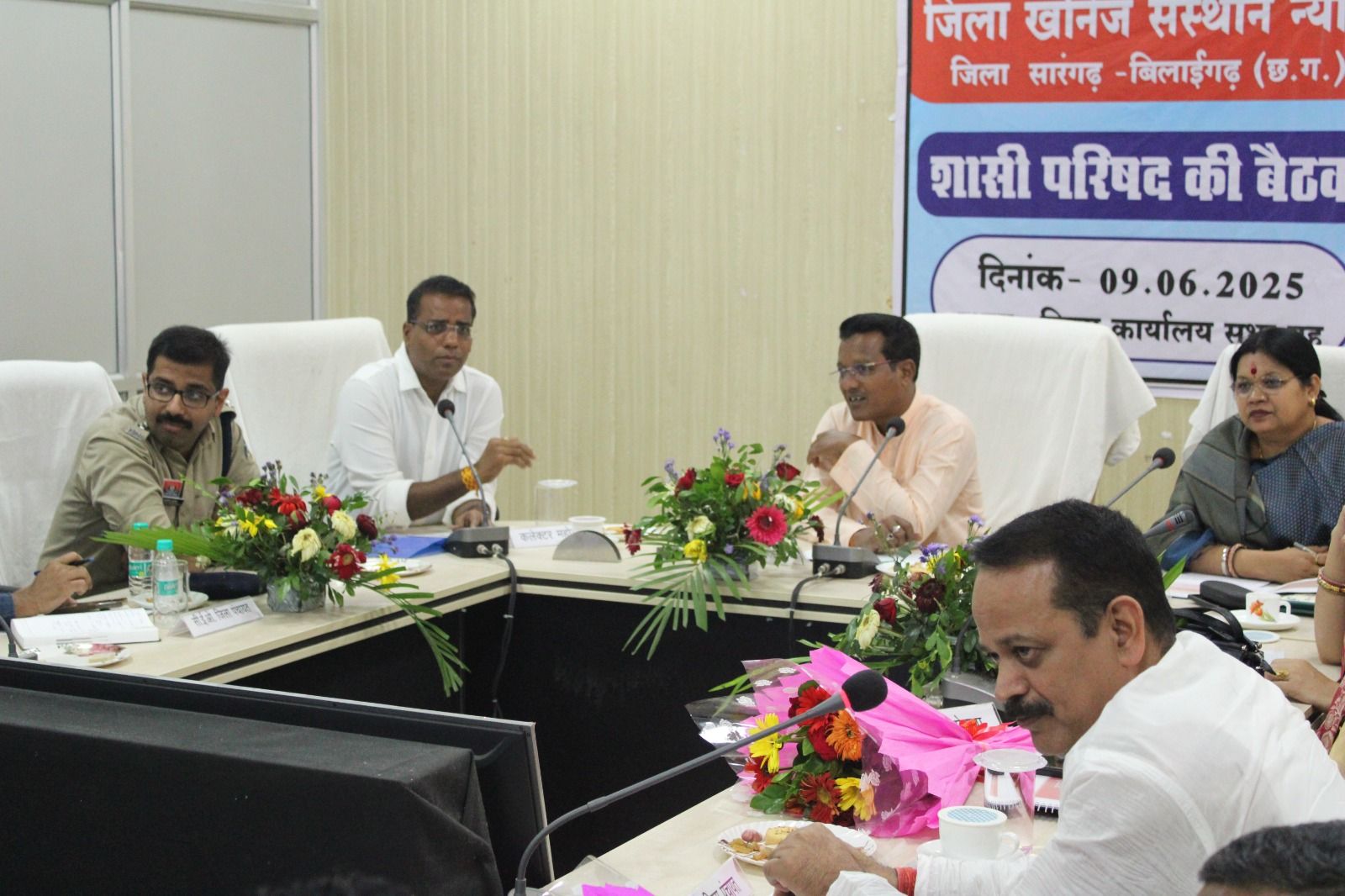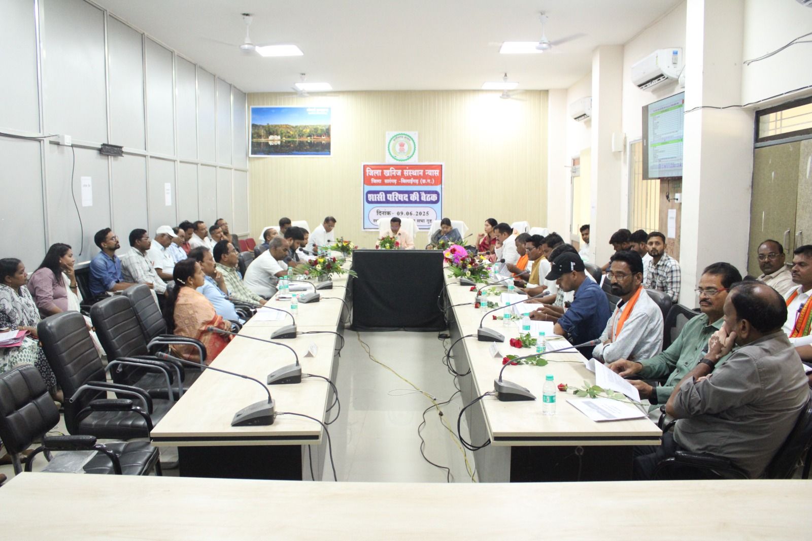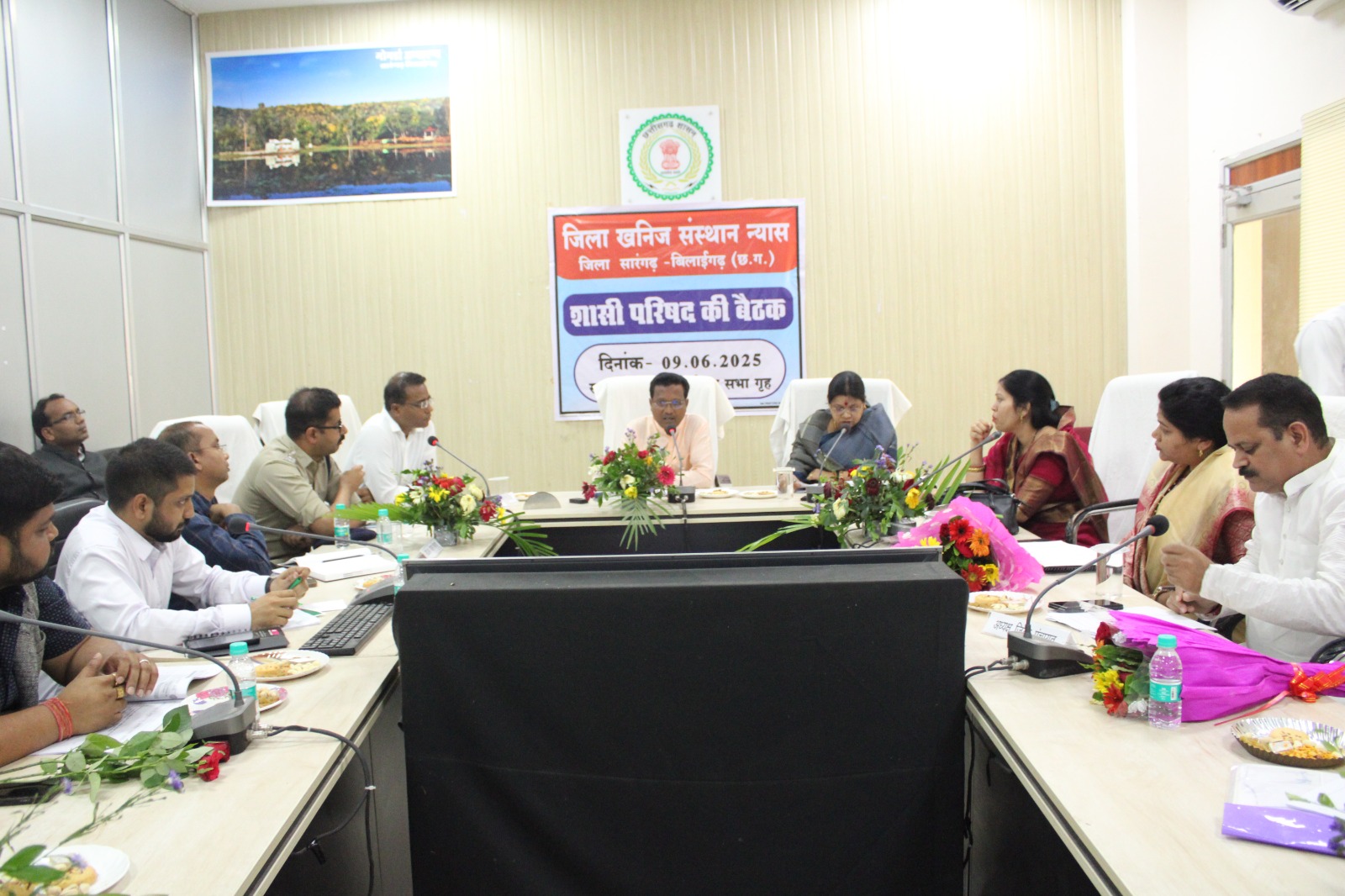 सारंगढ़ बिलाईगढ़, 9 जून 2025/जिला खनिज संस्थान न्यास (डीएमएफ) की शासी परिषद की बैठक कलेक्टोरेट सभाकक्ष सारंगढ़ में आयोजित किया गया। पेयजल, स्वास्थ्य, रोजगार, शिक्षा के कार्यों का चर्चा कर कार्ययोजना तैयार किया गया। इस बैठक में रायगढ़ लोकसभा सांसद राधेश्याम राठिया, जांजगीर चांपा लोकसभा सांसद कमलेश जांगड़े, सारंगढ़ विधायक उतरी जांगड़े, बिलाईगढ़ विधायक कविता लहरे, जिला पंचायत अध्यक्ष संजय भूषण पांडेय, उपाध्यक्ष अजय नायक, सदस्य दिनेश जांगड़े, सहोदरा सिदार, शासी परिषद के अन्य सदस्य, कलेक्टर डॉ संजय कन्नौजे, पुलिस अधीक्षक आंजनेय वार्ष्नेय, सीईओ जिला पंचायत इंद्रजीत बर्मन, नोडल अधिकारी डीएमएफ अनिकेत साहू सहित अन्य अधिकारीगण उपस्थित थे।