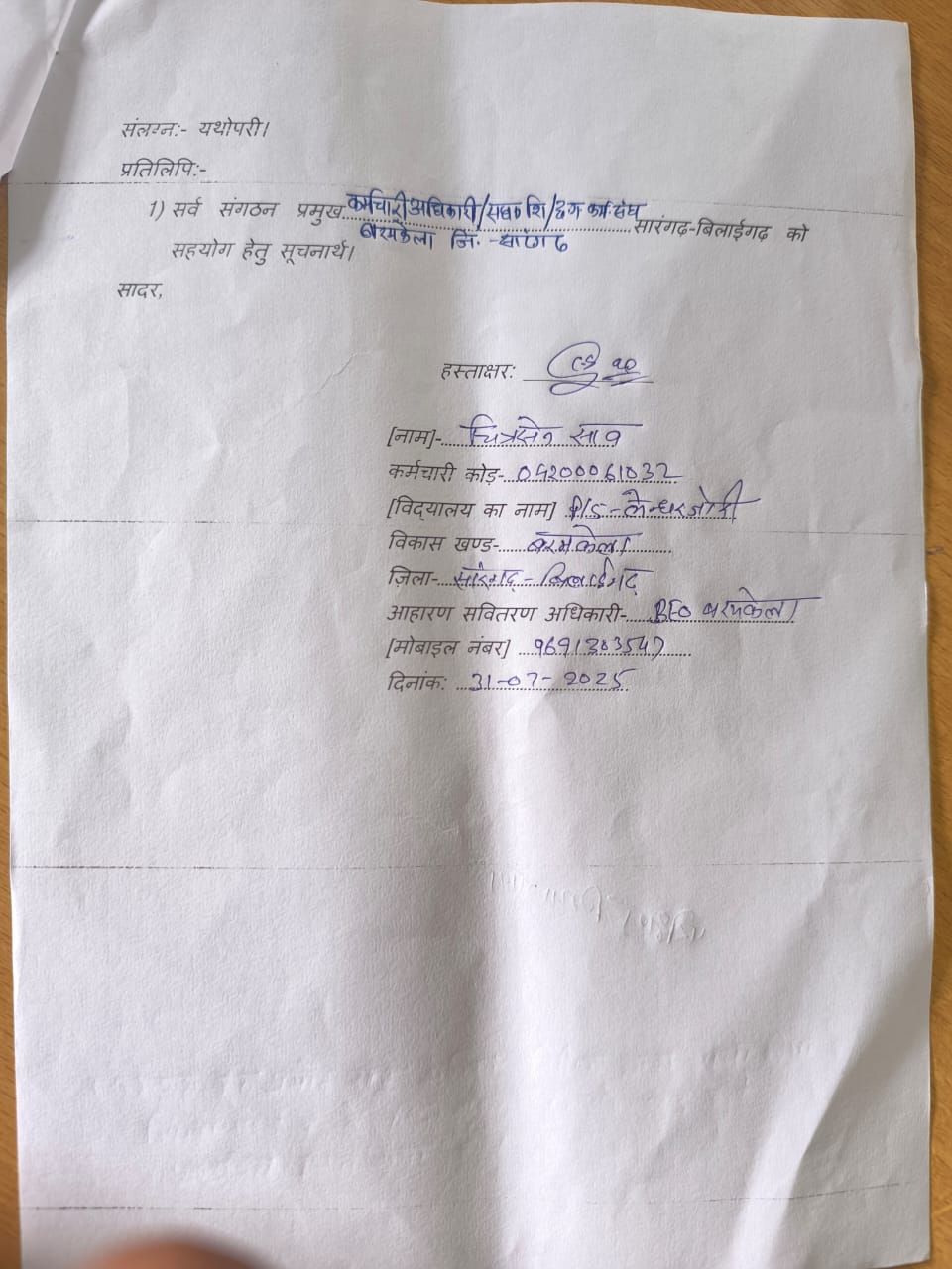 4) जुलाई 2025 का 100% वेतन रोका गया है जो की शास्ति नियम का उलंघन है, और जीवन निर्वाह एवं जीविका का रोक लगाना प्रहार करने के रूप में आपराधिक कृति की श्रेणी में आता है यह पूर्ण रूप से द्वेष भावना प्रदर्शित करता है अतः तत्काल कड़ी से कड़ी कार्रवाई करना सुनिश्चित करने की मांग किया गया है।