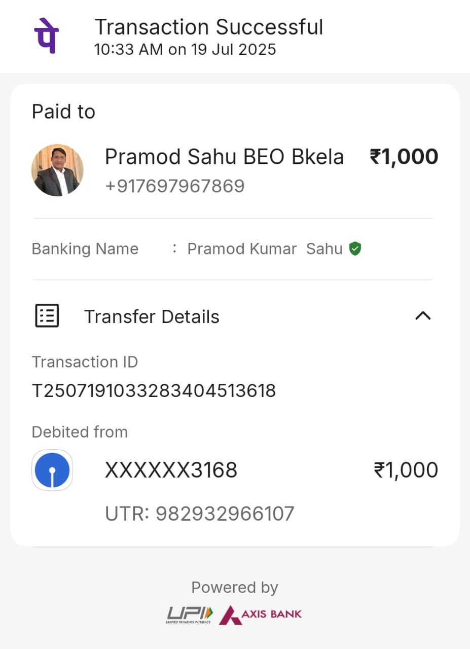 विकासखंड शिक्षा अधिकारी बरमकेला के संविदा लिपिक द्वारा वेतन निकालने के नाम पर ₹1000 की रिश्वत वह भी फोन पे पर!