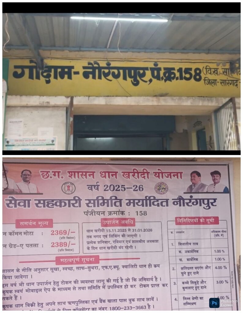सारंगढ़-बिलाईगढ़। जिले के सेवा सहकारी समिति नौरंगपुर में इन दिनों किसानों की मेहनत की कमाई पर सरेआम डाका डाला जा रहा है। शासन द्वारा निर्धारित मापदंडों एवं नियमों को ताक पर रखकर यहाँ किसानों से प्रति बोरा निर्धारित वजन से कहीं अधिक धान लिया जा रहा है। इस पूरे गबन के पीछे जनपद सदस्य प्रतिनिधि, मंडी अध्यक्ष और समिति प्रबंधक की गहरी सांठगांठ बताई जा रही है, जिसका खुलासा मीडिया की टीम ने मौके पर पहुंचकर किया है।