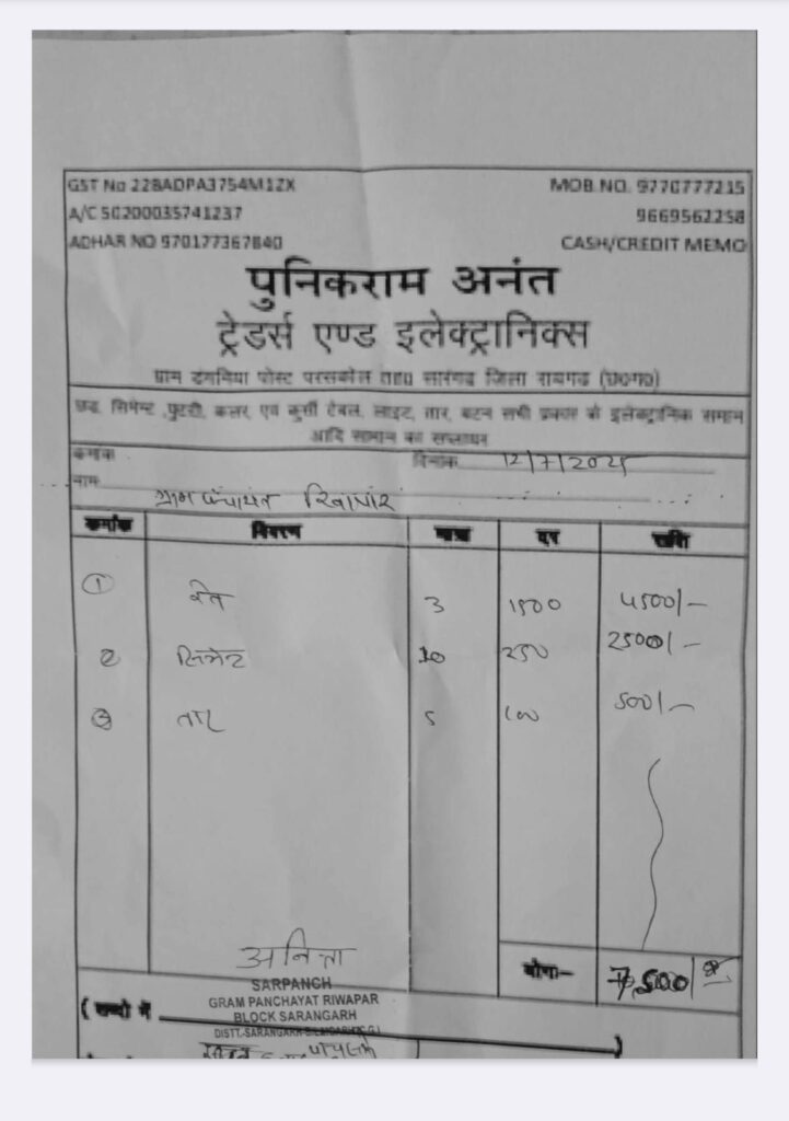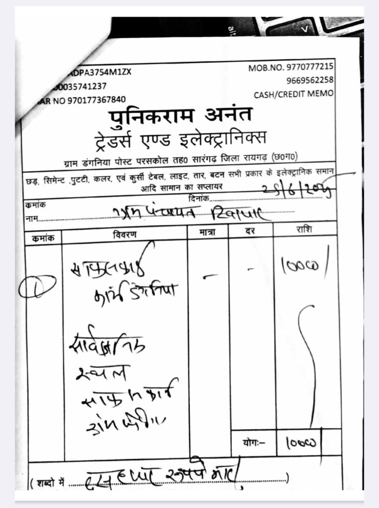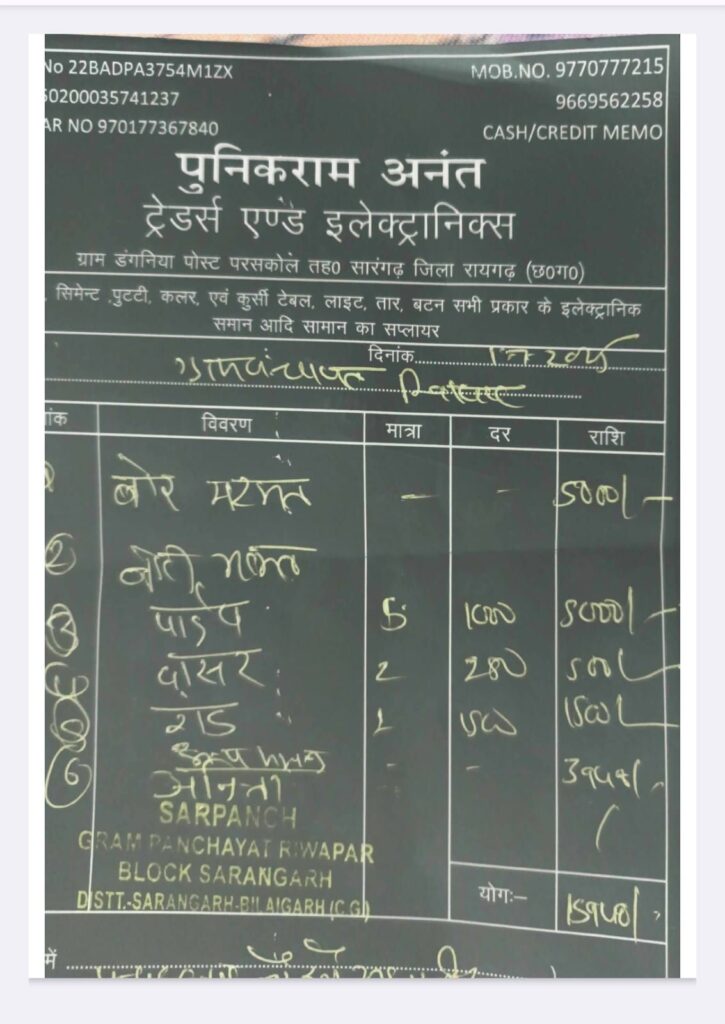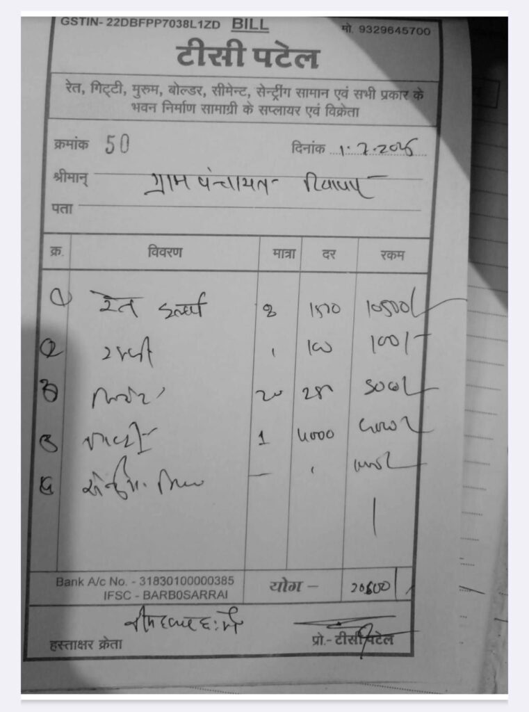 ग्रामीणों के बीच यह चर्चा आम है कि यदि सामग्री असली दुकान से खरीदी जाती, तो पक्का GST बिल जरूर मिलता। बिना बैध बिल लगाकर के राशि निकालना इस बात का पुख्ता सबूत है किः सामग्री की खरीदी ही नहीं हुई सिर्फ कागजों पर फर्जी बिल लगाकर पैसे निकाल लिए गए।