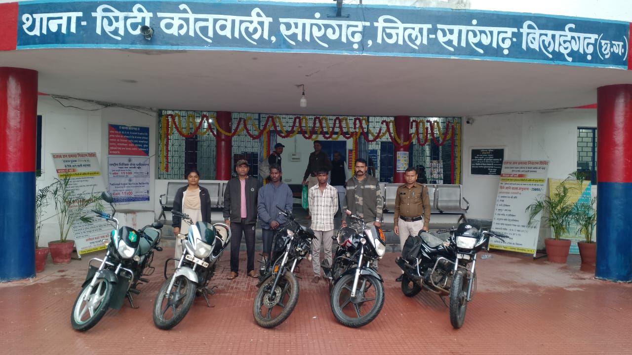 सारंगढ़ बिलाईगढ़ श्रीमान पुलिस अधीक्षक श्री पुष्कर शर्मा, अति0 पुलिस अधीक्षक श्रीमती निमिषा पांडये एवं एसडीओपी स्नेहील साहू के द्वारा चोरी की बढ़ती अपराधो पर रोकथाम हेतु लगातार निर्देशित किये जाने पर, थाना प्रभारी कोतवाली निरीक्षक कामिल हक के कुशल मार्ग दर्शन में थाना सिटी कोतवाली सारंगढ़ के पुलिस स्टाफ के द्वारा मोटरसाइकिल चोरी के गिरोहा को पकड़ने मे सफलता प्राप्त हुई