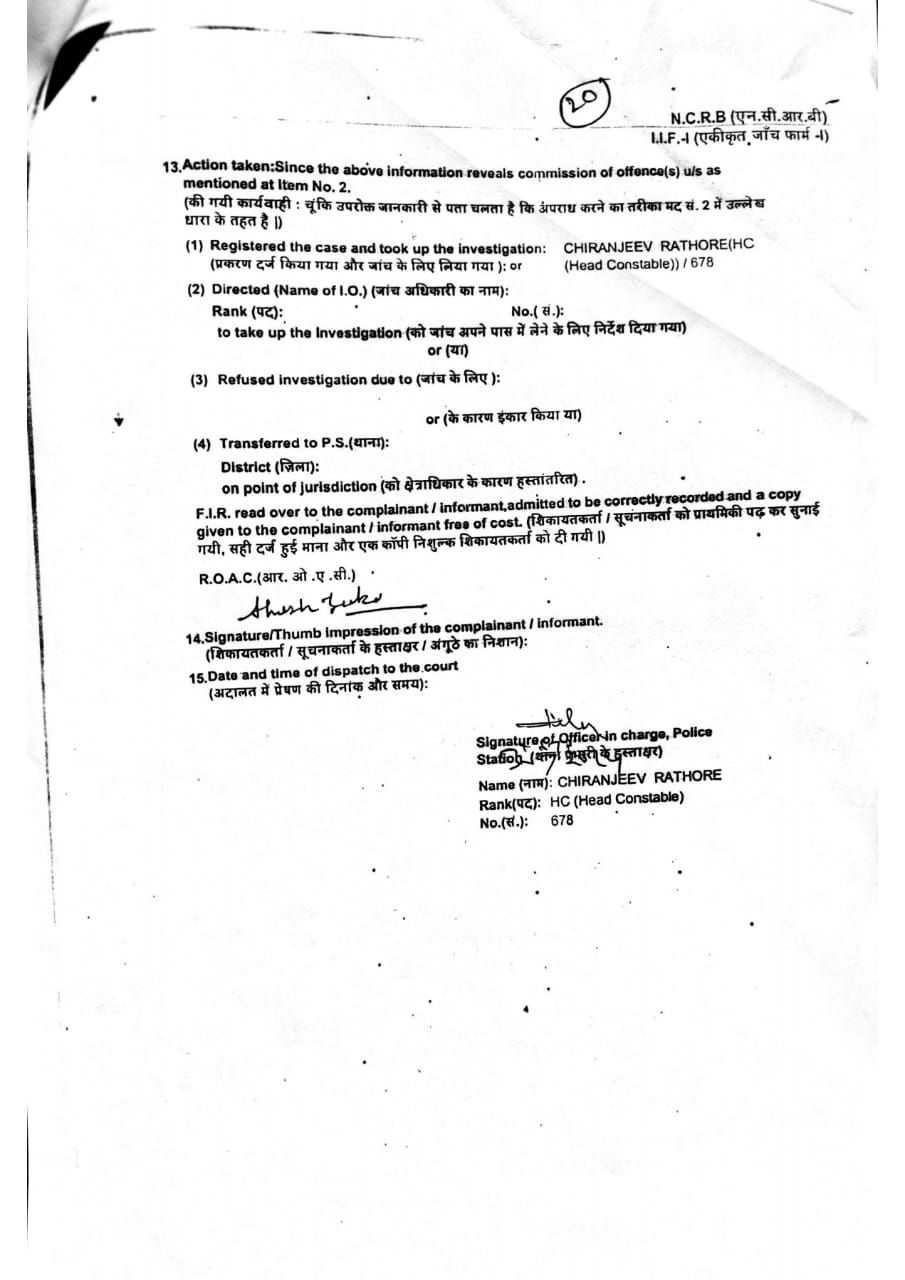 थाने में FIR कॉपी के अनुसार।
