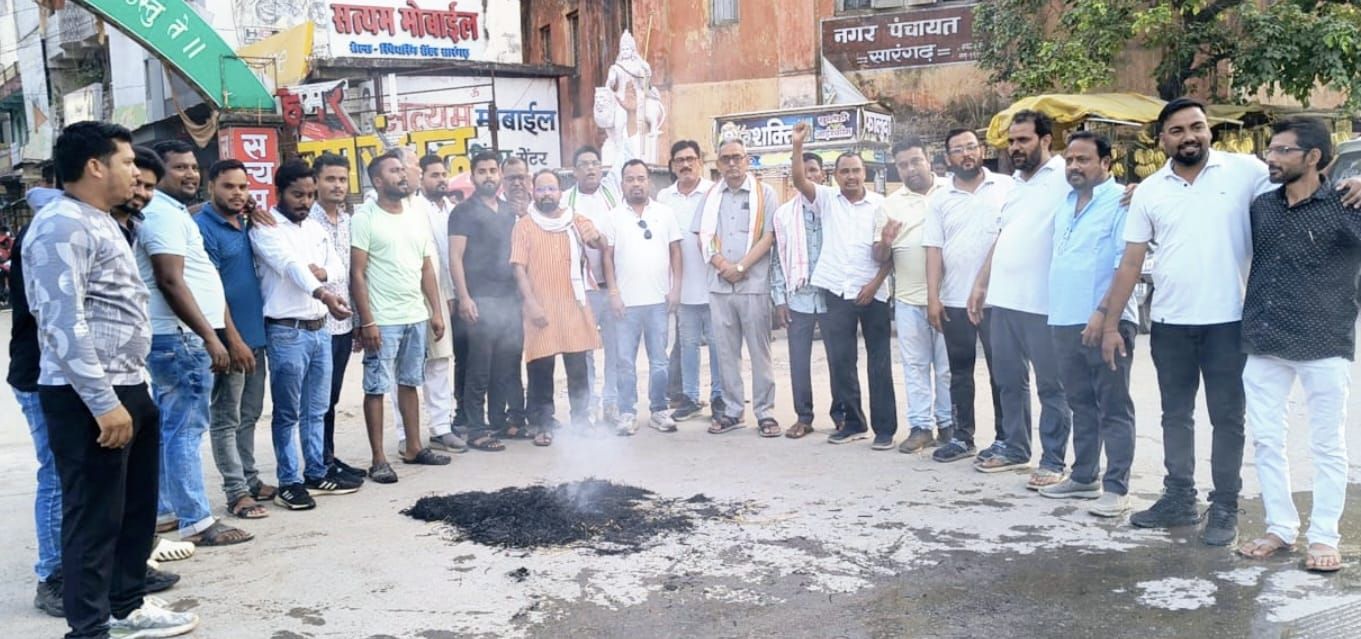 सारंगढ़ बिलाईगढ़ जिला मुख्यालय भारत माता चौक सारंगढ़ में प्रदेश कांग्रेस के अध्यक्ष दीपक बैज के निर्देश एवं जिला अध्यक्ष ताराचंद देवांगन के आह्वान में भाजपा नेता मंत्री विजय साह के द्वारा आपत्तिजनक शब्दों के विरोध में पुतला दहन किया गया। सारंगढ़ ब्लॉक कांग्रेस कमेटी के अध्यक्ष पुरुषोत्तम साहू एवं शहर कांग्रेस अध्यक्ष पवन अग्रवाल के नेतृत्व में जिले भर के कांग्रेसियों ने जमकर नारेबाजी की युवाओं ने सारंगढ़ भारत माता चौक में विजय शाह का पुतला दहन किया, पुलिस प्रशासन के जवानों ने पुतले को पानी से बुझाने का भर्षक प्रयास किया। कांग्रेस के वरिष्ठ नेता सूरज तिवारी ने मीडिया को बताया कि जिस तरह से भाजपा के नेता मंत्री जैसे बड़े पद में आसीन होने के बाद हमारे देश की बिटिया सेना के जवान को लेकर विवादित और अमर्यादित बयान बाजी किए वह अशोभानीय है, कांग्रेस इसका पुरजोर विरोध करती है और महिला और भारतीय सेना के सम्मान में उन्हें तत्काल अपने पद से इस्तीफा देकर माफी मांगनी चाहिए।